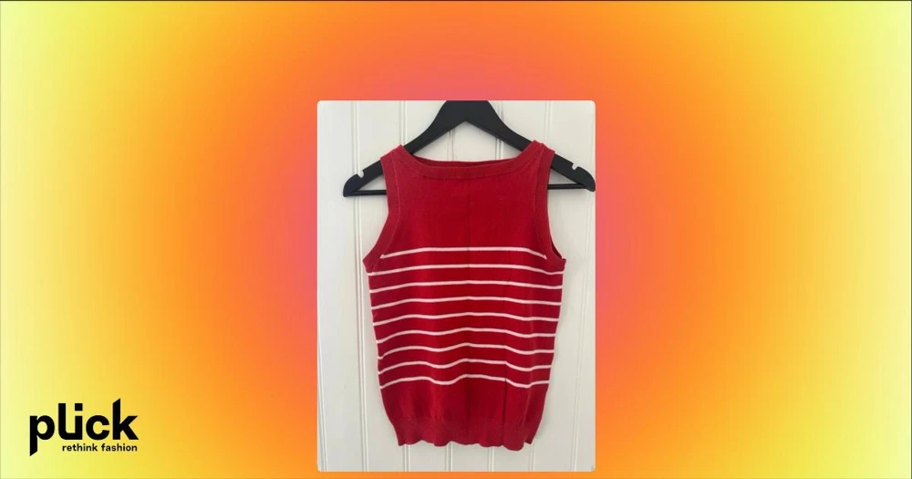 Röd randig linnetopp från Zara - Säljer en röd ärmlös linnetopp från Zara med vita horisontella ränder. Toppen har rund halsringning och är gjord i mjuk bomullsblandning med 70% bomull och 30% nylon. Perfekt för varma dagar och enkel att styla till jeans eller kjol.