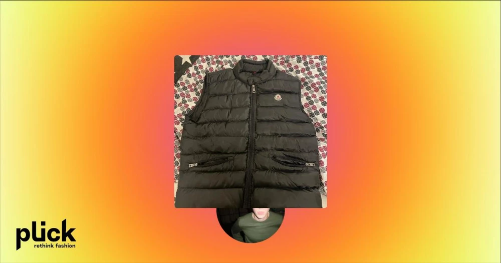 Svart dunväst från Moncler - Snygg svart dunväst från Moncler med dragkedja och hög krage. Västen har två praktiska fickor med dragkedja framtill och Monclers logga på bröstet. Storlek L