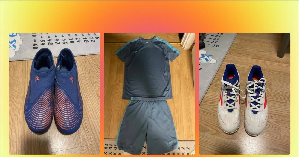 Tränings kläder och sommarkläder  - Bilderna visar ett blått Nike träningsset med t-shirt och shorts, men inga skor finns med. Setet har ljusblå detaljer och är gjort i syntetmaterial, perfekt för träning. Man kan också diskutera priset