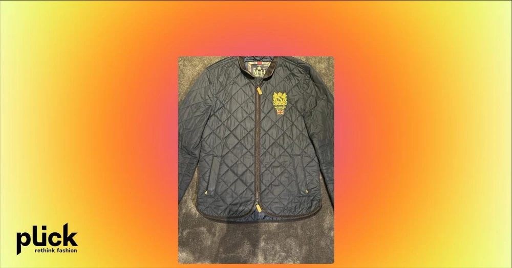 Marinblå quiltad vindjacka Morris - Stilren marinblå vindjacka från Morris med quiltat mönster och guldfärgat broderi på bröstet. Jackan har dragkedja, två fickor framtill och detaljer i brunt vid dragkedja och nederkant. Perfekt för en klassisk och sportig look.