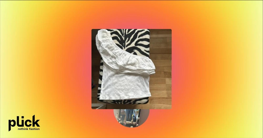 Vit one shoulder topp med volang från Gina Tricot - Säljer en vit one shoulder topp från Gina Tricot i ribbad bomull med bred volang i broderad spets. Perfekt för dig som gillar en trendig och söt stil. Toppen är ärmlös och har en snygg omlottkänsla med volangdetalj. Tröjan har fått en liten solkräms fläck på ena sidan men det syns knappt på. Använd få antal gånger. Perfekt i sommar!