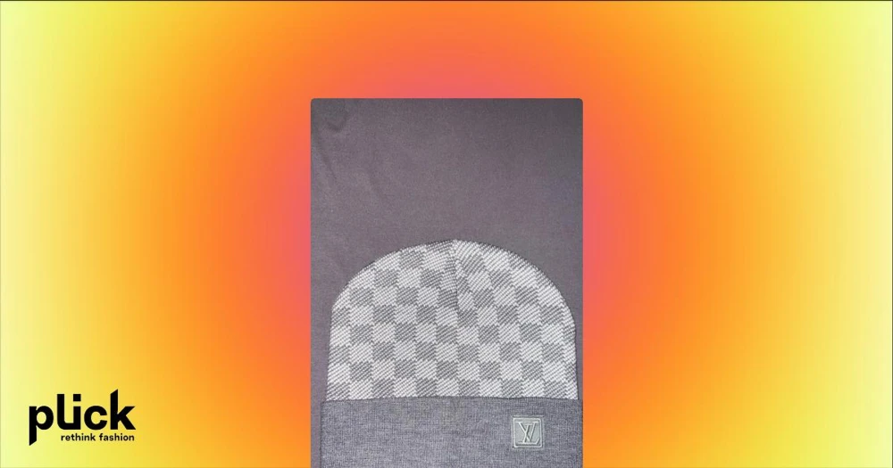 Grå rutig mössa Louis Vuitton - Snygg grå mössa från Louis Vuitton med klassiskt rutigt mönster och uppvikt kant. LV-logga broderad framtill. Materialet är mjukt och stickat, perfekt för kyliga dagar. Stilren design som lyfter din look.