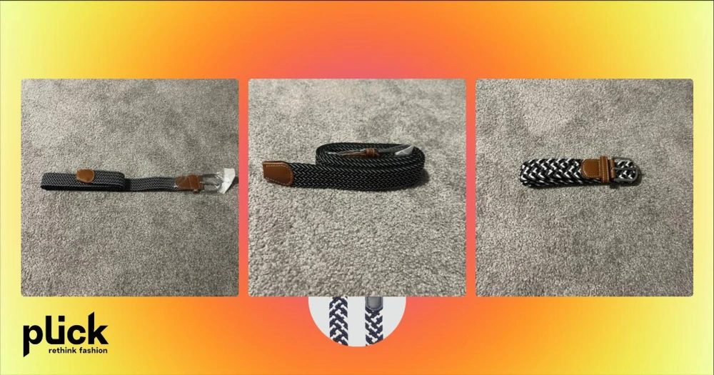 Svartvitt randigt bälte med läderdetaljer - Snyggt bälte med svartvitt zickzackmönster och bruna läderdetaljer vid spännet. Bältet har ett klassiskt metallspänne och är gjort i ett flexibelt, stickat material som ger en cool och modern look. Perfekt accessoar för att lyfta din outfit.