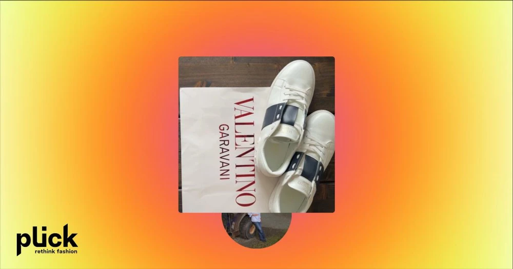 Valentino Garavani vita sneakers - Snygga vita sneakers från Valentino Garavani med bred svart läderdetalj över sidan och coola nitar på hälen. Skorna har snörning och rund tå, samt diskret logga på plösen och sulan. Perfekta för dig som vill ha en lyxig och stilren look.