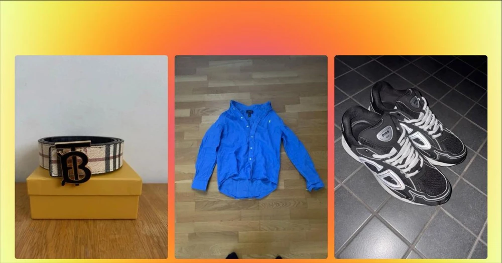 Rutig Burberry bälte med B-spänne - Snyggt bälte från Burberry med klassiskt rutigt mönster i beige, svart, vitt och rött. Bältet har ett stort metallspänne med Burberrys ikoniska B-logga. Perfekt accessoar för att lyfta din outfit.