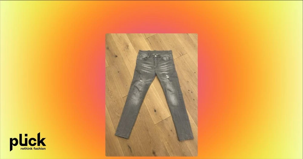 Grå slim fit jeans från Dsquared2 - Säljer ett par grå slim fit jeans från Dsquared2 med slitningar och fina detaljer som färgstänk och distressed look. Jeansen har klassisk femficksdesign, knappgylf och Dsquared2-logga på bakfickan. Perfekt för någon som festar och vill sticka ut.