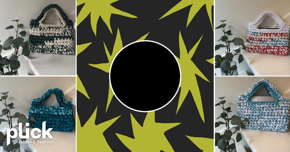 Virkad väska - Virkad väska i återvunnet bomullsmaterial från textilindustrin. 25x14cm.