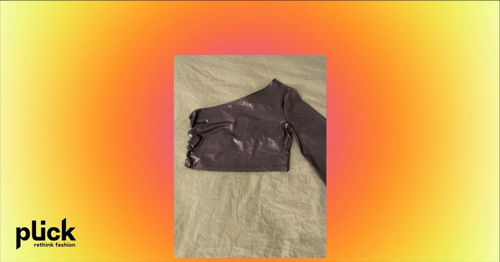 Glittrig one shoulder topp från NA-KD - Säljer en svart glittrig one shoulder topp från NA-KD. Toppen har lång ärm på ena sidan och är axelbandslös på andra. Materialet är glansigt och stretchigt och det är en magtröja.