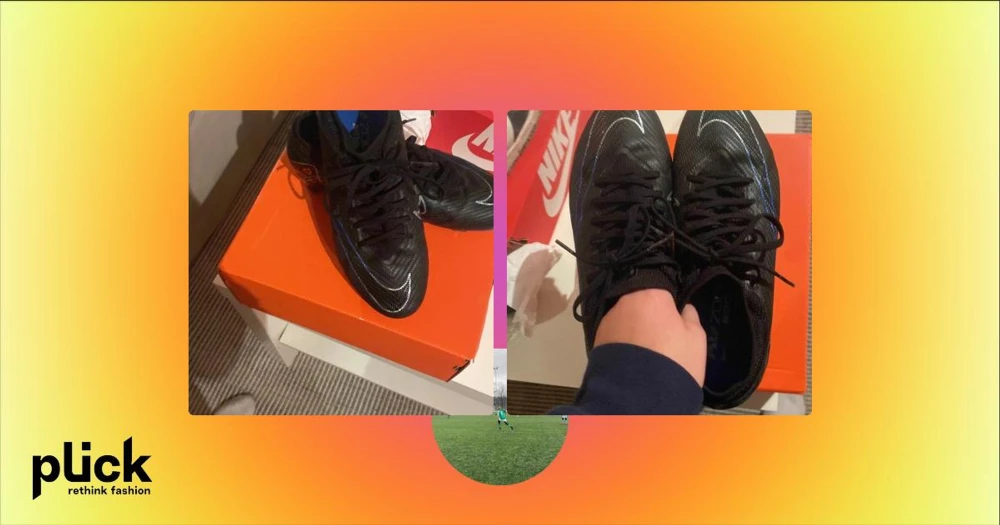 Svarta fotbollsskor från Nike - Snygga svarta fotbollsskor från Nike med blå detaljer och snörning. Skorna har en slitstark sula med dobbar, perfekt för spel på gräsplaner. De är designade för att ge bra grepp och stabilitet under matchen.