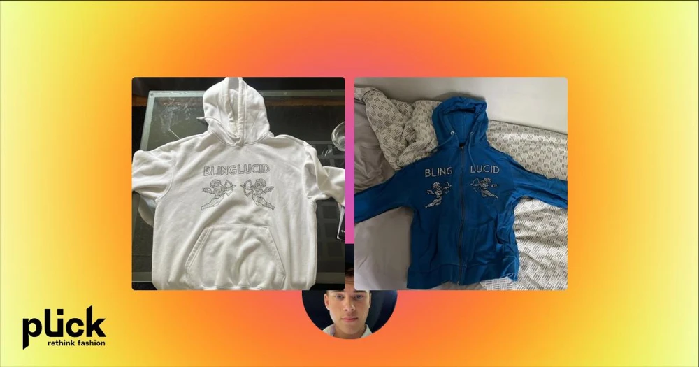 Vit hoodie från Blinglucid med änglar - Vit hoodie från Blinglucid med glittrande text och två änglar framtill. Klassisk känguruficka och huva. Perfekt för dig som gillar streetstyle och vill sticka ut med snygga detaljer.