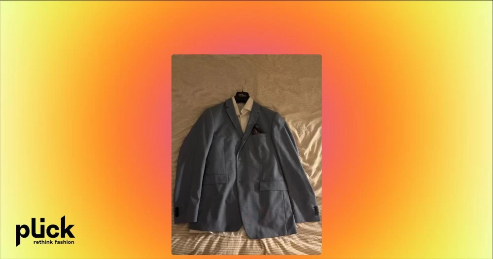 Tiger of Sweden kostym  - Elegant kostym i ljusblå färg. Kavajen har en klassisk passform med knäppning framtill och fickor. Tillhörande byxor i matchande färg ingår. En vit skjorta från Eton i slim fit storlek 41/16 och en orange slips ingår också. (Tiger of Sweden) OBS! Det är ingen röd fläck på kostymen på första bilden, då kameran är så!
