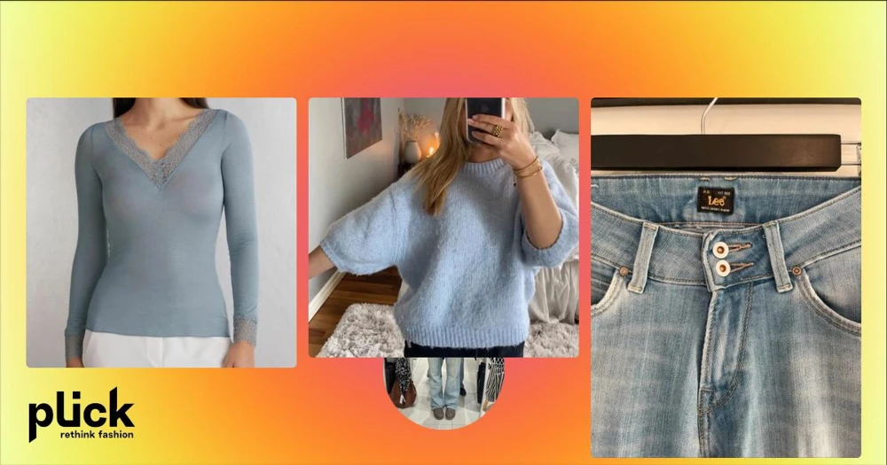 Ljusblå långärmad topp med spets - Supersnygg ljusblå långärmad topp med v-ringning och spetsdetaljer både vid halsringningen och ärmsluten. Toppens material är tunt och stretchigt, vilket ger en slim passform och en fräsch look.