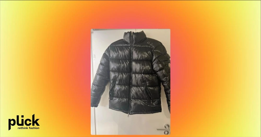 Moncler jacket  - Säljer en svart pufferjacka från Moncler i storlek M. Jackan har glansig yta, hög krage och två sidofickor med dragkedja. Insidan har ett coolt serietryck och klassisk Moncler-logga. Perfekt för dig som vill ha en varm och snygg jacka med street vibe.