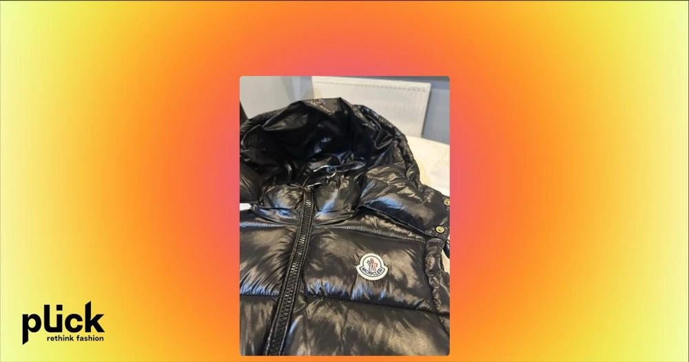 Svart pufferjacka från Moncler - Säljer en svart glansig pufferjacka från Moncler med huva och ikonisk logga på bröstet. Jackan har röd och vit rand längs dragkedjan, quiltad design och innerfoder med serietidningsmönster. Perfekt för kalla dagar och riktigt snygg streetstil.