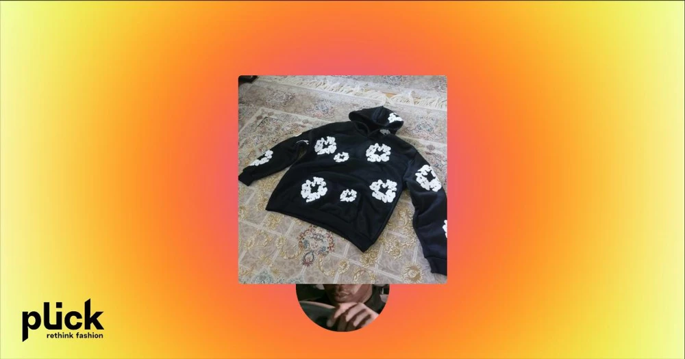 Svart hoodie med vita blommiga tryck Denim tears - Cool svart hoodie med stora vita blommiga tryck över hela tröjan, även på huvan. Tröjan har klassisk känguruficka och huva. Perfekt för dig som vill sticka ut med en unik och trendig stil.