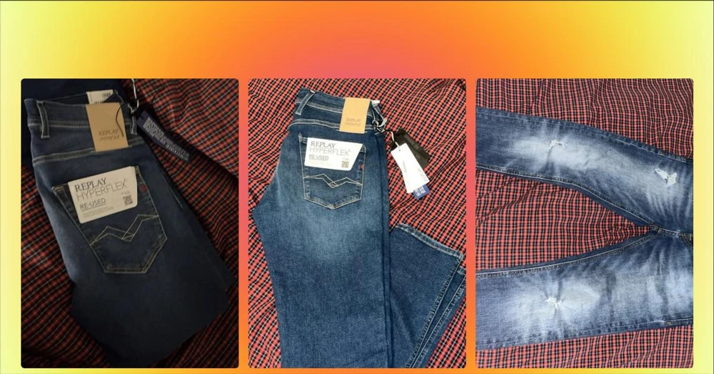 Blå jeans från Replay Hyperflex - Snygga blå jeans från Replay Hyperflex med klassisk femficksdesign och vita kontrastsömmar. Jeansen har en rak passform och är tillverkade i stretchigt denimtyg för extra komfort. Perfekta för en avslappnad och trendig look. Det är storlek 27 men sitter som 28-29