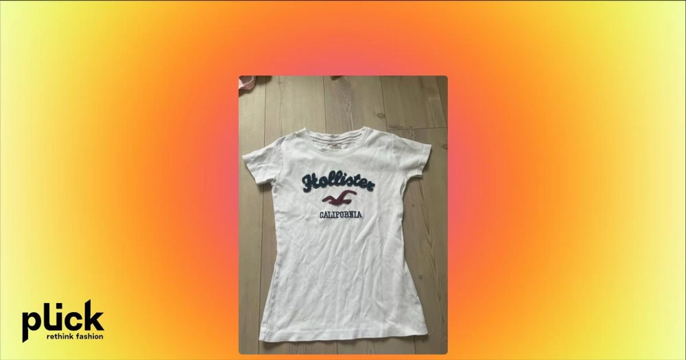 Vit Hollister t-shirt med tryck - Säljer en vit t-shirt från Hollister med blå och röd broderad logga och texten 'California' på bröstet. T-shirten har rund hals, korta ärmar och är i mjuk bomull. Passformen är normal och den är perfekt för en avslappnad stil.