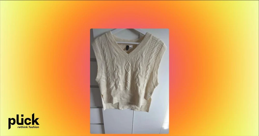 Vit stickad väst med kabelmönster - Vit kabelstickad väst från Divided med V-ringning och bred ribbad nederkant. Västen är ärmlös och har snygga flätade detaljer framtill. Materialet är mjukt och passar perfekt för lager-på-lager.  Frakt betalar man själv
