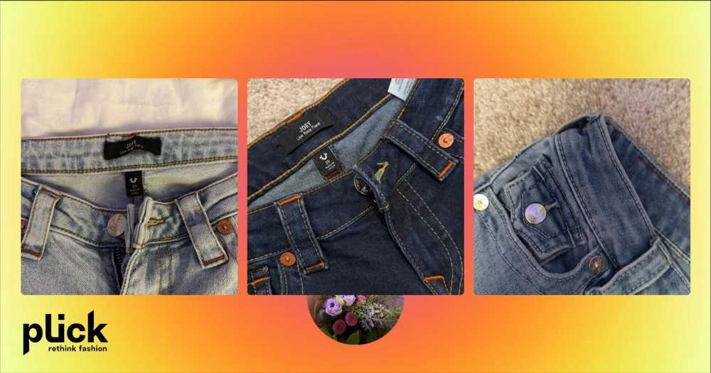 True Religion Joey Low Rise Flare Jeans - Mörkblå jeans från True Religion, modell Joey Low Rise Flare. Snygga kontrastsömmar i orange och gult, klassiska fickor med dekorativa sömmar och logoknappar. Låg midja och utsvängda ben ger en cool retrostil. Använda en gång pris kan diskuteras ❤️💕