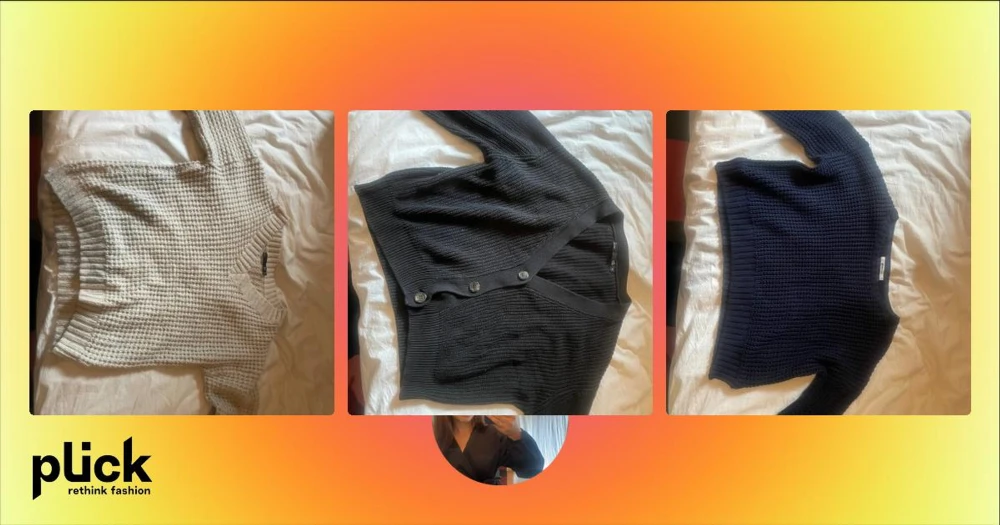 Mörkblå stickad tröja från Gina Tricot - Mysig mörkblå stickad tröja från Gina Tricot med grov struktur och rund hals. Tröjan har långa ärmar och ribbade muddar vid ärmslut och nederkant. Perfekt för lager-på-lager och chill dagar.
