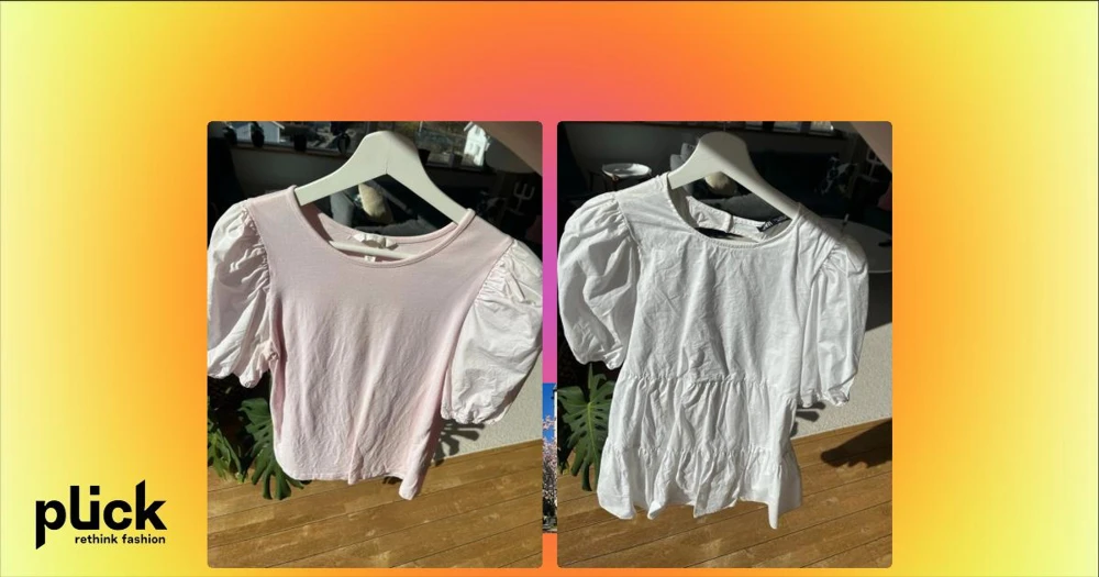 Ljusrosa topp med puffärmar - Supersöt ljusrosa topp med korta puffärmar i vitt. Toppen har rund halsringning och är gjord i mjukt bomullstyg. Perfekt för dig som vill ha en feminin och trendig look med extra volym på ärmarna.