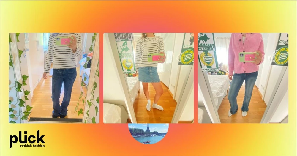 Mörkblå jeanskjol från Calzedonia - En mörkblå kjol med gul och hål. Men trådar som hänger ner