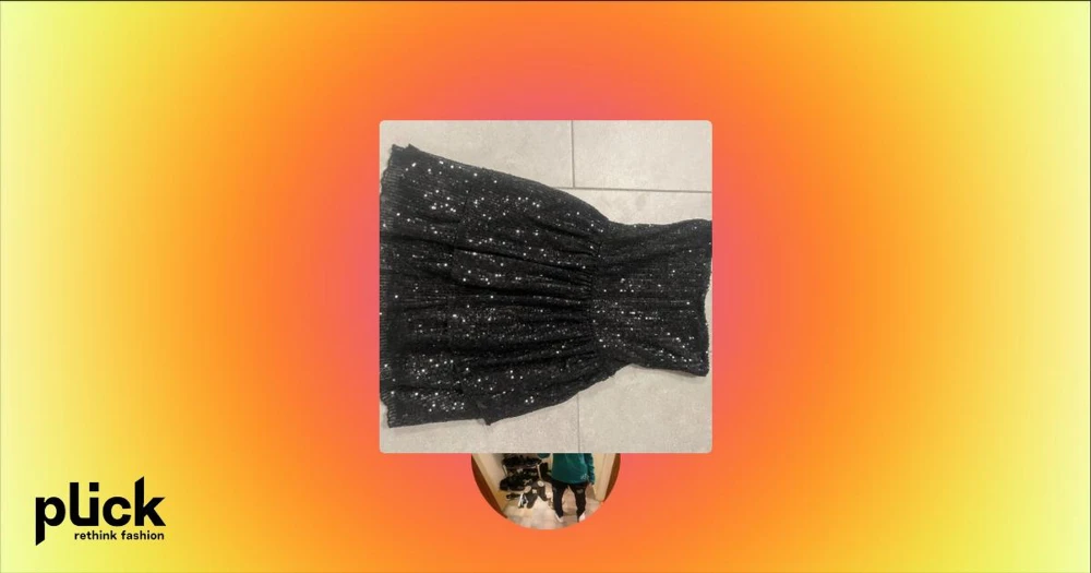 Svart paljettklänning från Gina Tricot - Snygg svart klänning från Gina Tricot täckt med glittriga paljetter. Perfekt för festliga tillfällen med en elegant och iögonfallande design. Axelbandslös modell som ger en stilren look.