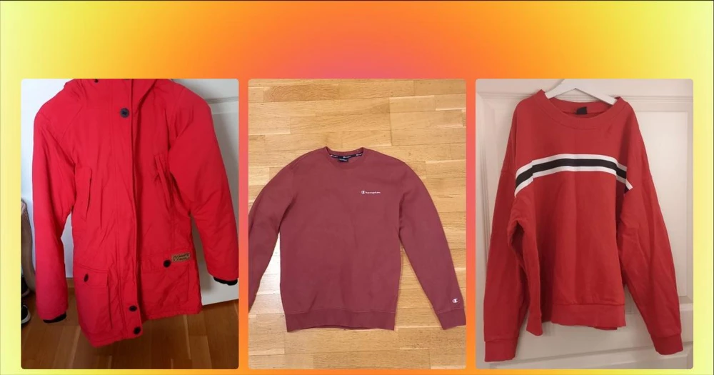 Röd sweatshirt från Gina Tricot - Röd sweatshirt från Gina Tricot med vita och svarta ränder över bröstet. Tröjan har rund halsringning, långa ärmar och en relaxed passform. Perfekt för en avslappnad och sportig stil.