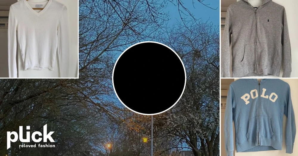 Tunn stickad tröja  - Vit långärmad tröja med ett litet hål längst ner på tröjan