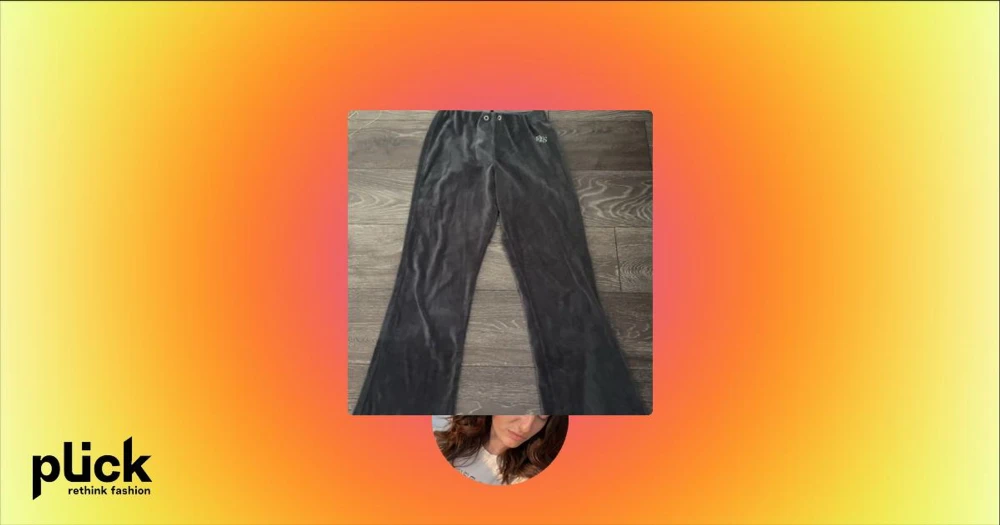 Svarta velourbyxor med bootcut - Mysiga svarta byxor i mjuk velour med bootcut-ben och resÄr i midjan. Byxorna har en liten broderad logga framtill och metallöljetter vid midjan för snörning. Perfekta för en chill och trendig look.