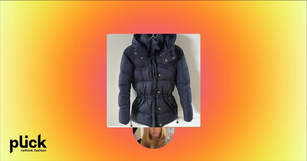 Mörkblå dunjacka med huva och snörning - Snygg mörkblå dunjacka med huva och dragsko i midjan för en schysst passform. Jackan har både knappar och dragkedja framtill samt stora fickor. Perfekt för kalla dagar när du vill hålla värmen och ändå se stilren ut.