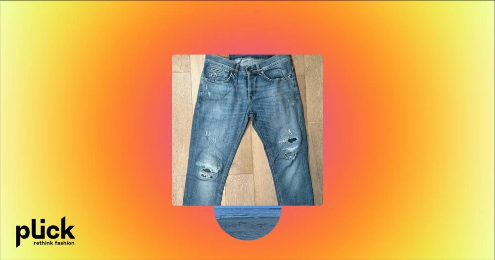 Blå slitna jeans i storlek 32 - Sköna dondup jeansen |  modell: GEORGE med slitningar |  Storlek: W32 och längd 100 CM | 🚨 Pris går att diskutera vid snabb affär | Skick: Sparsamt använda!