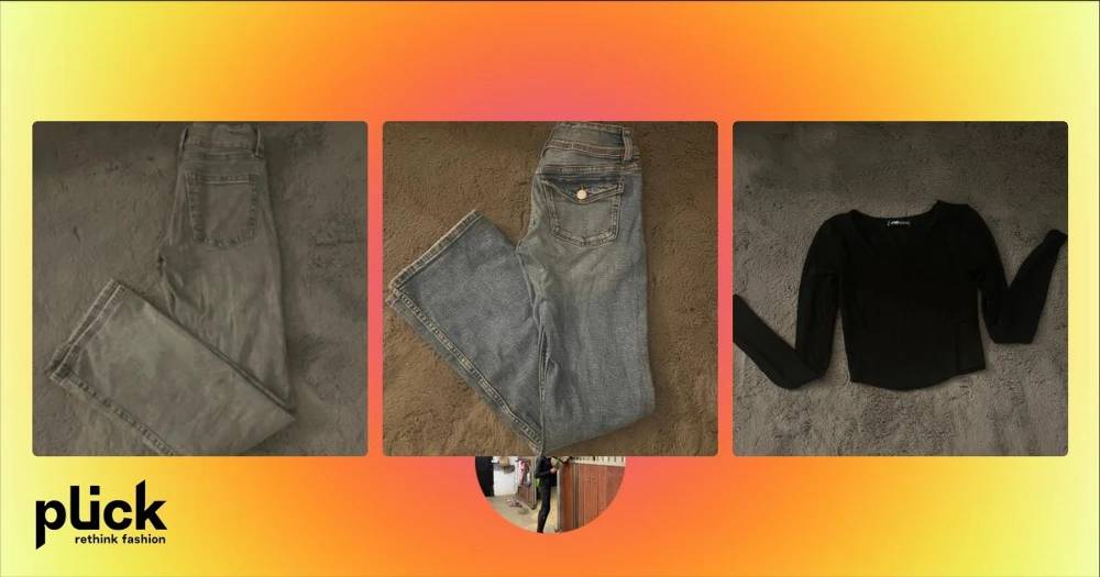 Blå bootcut jeans med fickdetalj  - Snygga blå jeans med bootcut passform och klassisk femficksdesign. Jeansen har en cool ficka med knapp bak och ljus tvätt som ger en avslappnad vibe. Perfekta för dig som gillar en lite vidare siluett nertill. Materialet är klassisk denim.