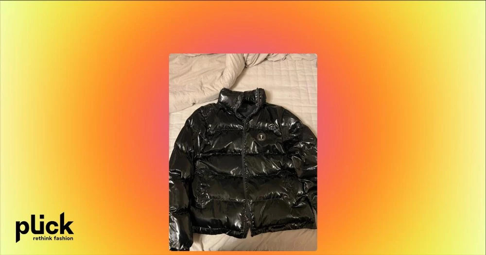Svart pufferjacka från Trapstar M - Snygg svart pufferjacka från Trapstar med glansig finish och broderad logga på ryggen. Har bara använt den en vinter och bara några gånger. Jackan har hög krage, dragkedja framtill och rund patch med 'It's a Secret' på bröstet. Perfekt för kalla dagar och streetwear-stil.