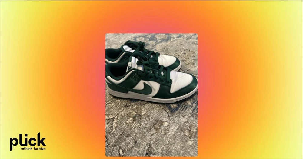Nike low dunk green satin - Använd max 5 gånger. Det finns veck på tån och loggan på innersulan är sliten Annars är dom i gott skick, inga fläckar, hål eller större skador. Bud är välkomna! 😊