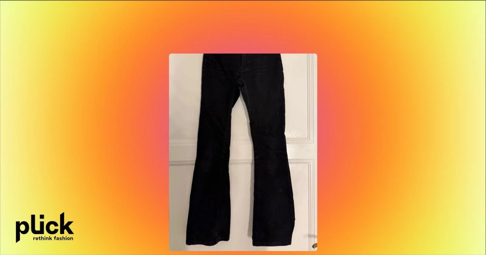 Svarta bootcut jeans från Ginatricot - Säljer ett par svarta bootcut jeans från Ginatricot. De har låg-medel hög midja, utsvängda ben och klassiska fem fickor. Jeansen är i ett stretchigt denimtyg som sitter snyggt och bekvämt. Perfekta för dig som gillar en retroinspirerad look. Lite urtvättade men inge mer synligt slitage.