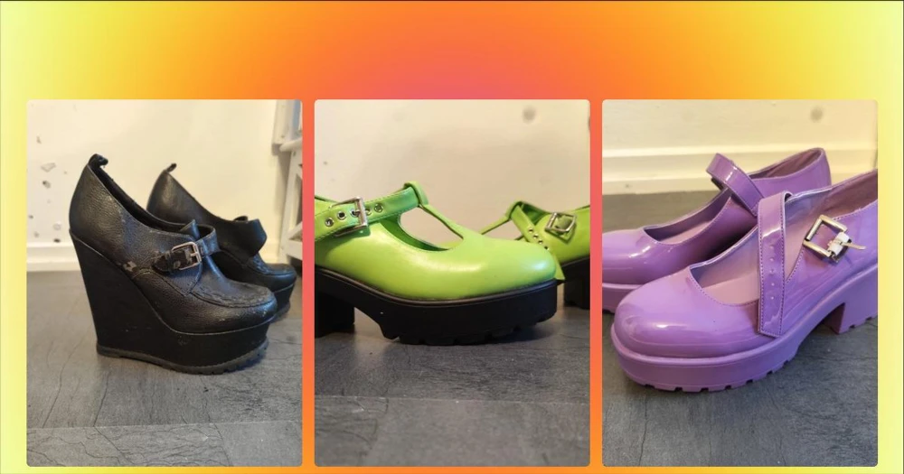 Lila Mary Jane pumps från Koi Footwear - Säljer ett par lila Mary Jane pumps från Koi Footwear med chunky plattform och bred klack. Skorna har en glansig finish, rund tå och justerbart spänne i silver. Tillverkade i syntetmaterial och har en rejäl sula med grovt mönster för extra attityd. Använda ca två gånger