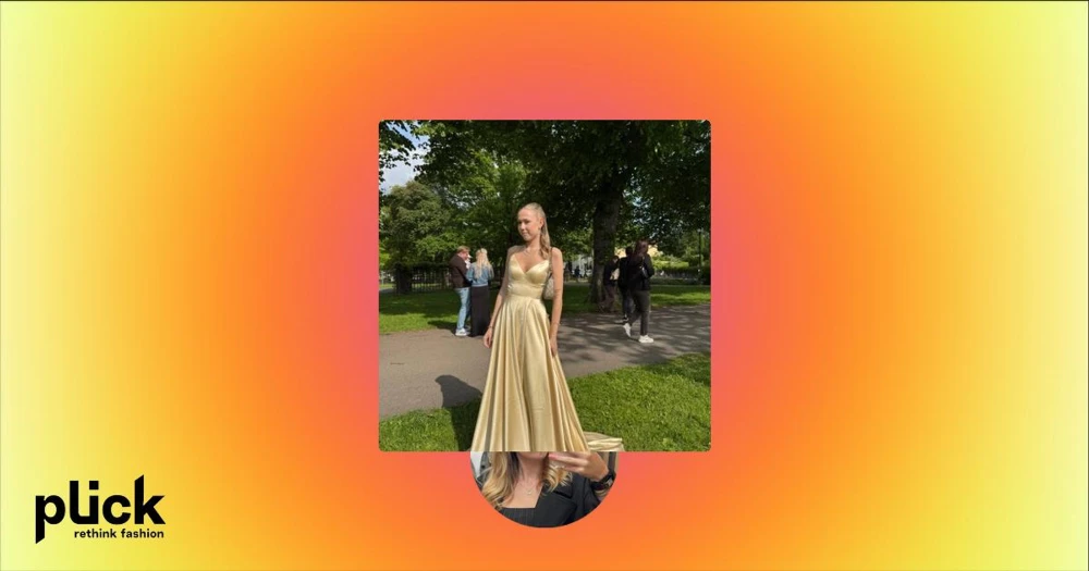 Dressroom linne klänning gul  - Originalpris 5500 kr. Säljer en elegant långklänning i champagnefärgad satin med smala axelband och öppen rygg med snörning. Klänningen har v-ringad urringning och ett svepande, glansigt tyg som ger en lyxig känsla. Perfekt för bal eller student!