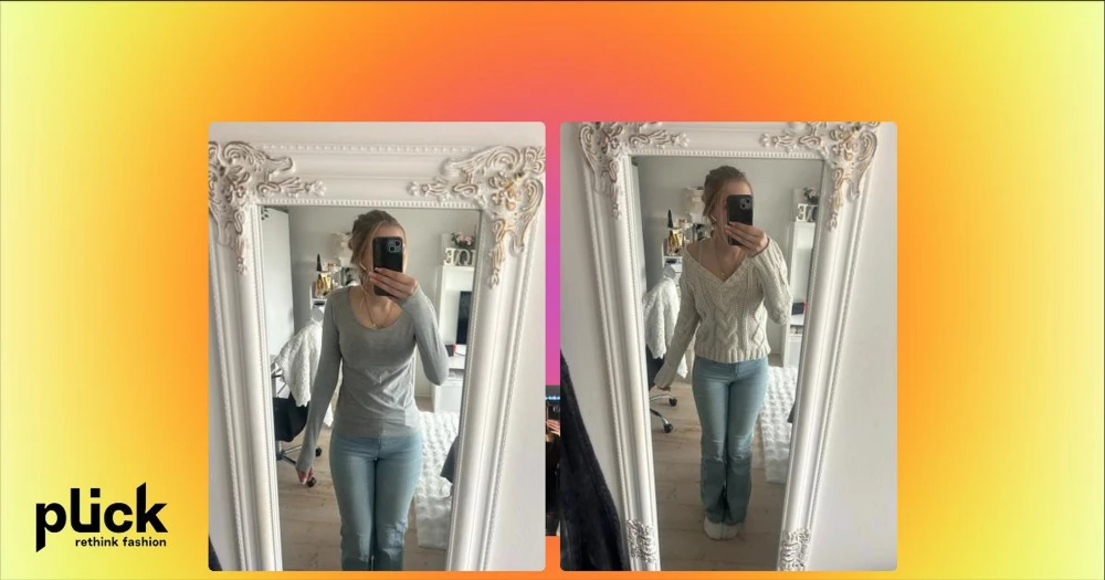 Beige kabelstickad tröja från NA-KD - Säljer en beige kabelstickad tröja från NA-KD med djup v-ringning och långa ärmar. Tröjan har ett snyggt flätmönster och ribbade muddar vid ärmslut och nederkant.