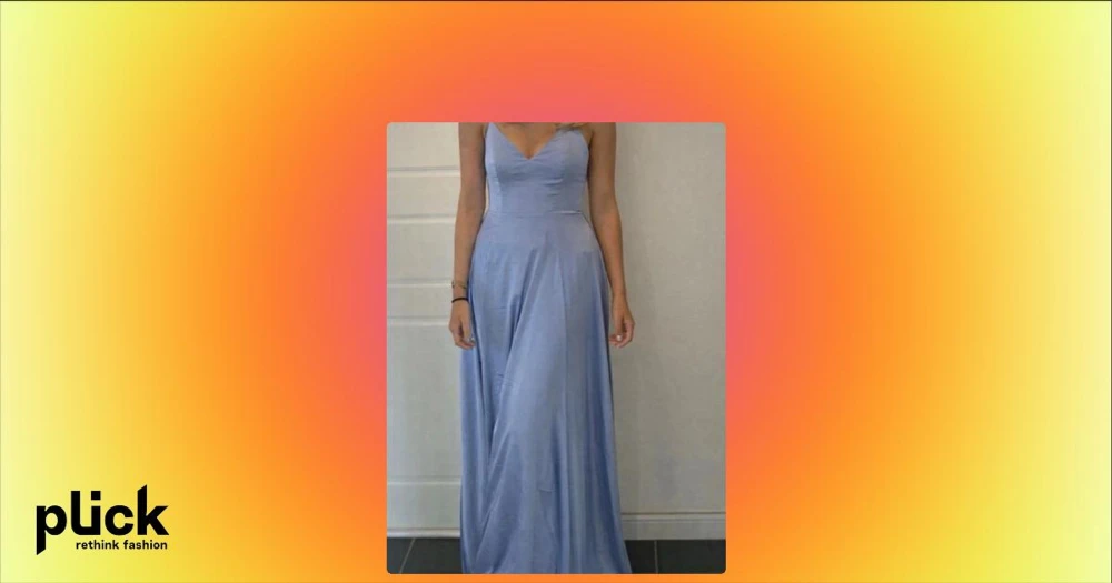 Balklänning  - Elegant ljusblå långklänning med smala axelband och v-ringad urringning. Klänningen har en figurnära överdel och ett svepande, utsvängt kjolparti i ett glansigt material som ger en lyxig känsla. Perfekt för speciella tillfällen. Ändast använd 3 gånger. Ursprungliga pris 1 200.