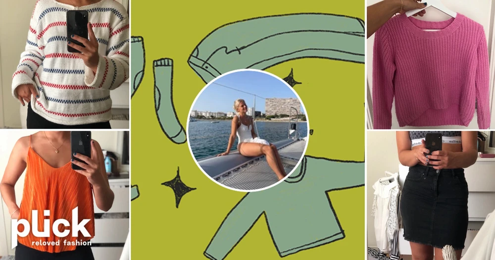 Stickad tröja - Rosa stickad tröja. Storlek 146/152 dvs i barnstorlek. Därmed något croppad på mig på bilden.