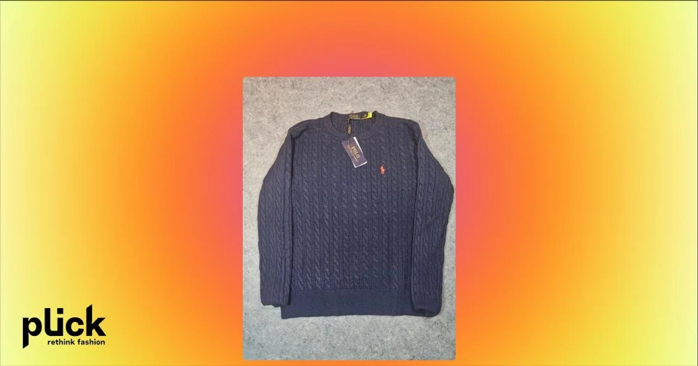 Marinblå stickad tröja Polo Ralph Lauren - Snygg marinblå stickad tröja från Polo Ralph Lauren i storlek S. Tröjan har ett klassiskt kabelstickat mönster och en röd broderad logga på bröstet. Rund halsringning och långa ärmar ger en stilren look. Perfekt för dig som gillar tidlös design och premiumkänsla.