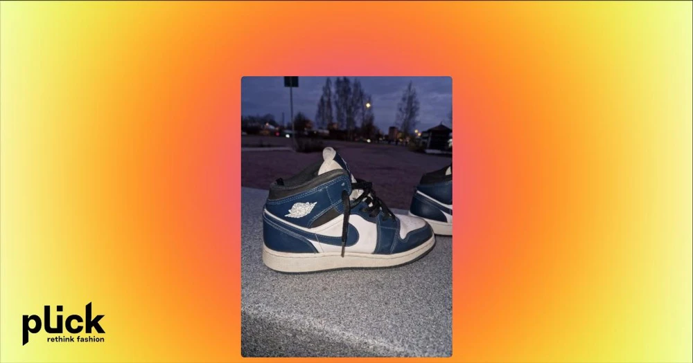 Nike Air Jordan 1 Mid blå/vit - Snygga Nike Air Jordan 1 Mid sneakers i blått och vitt läder med svarta detaljer och klassisk Jordan-logga på sidan. Skorna har svart snörning och vit sula. Perfekta för dig som gillar streetwear och vill sticka ut med en ikonisk modell.