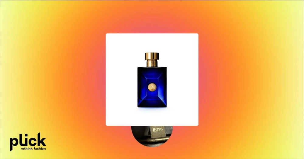 Blå parfymflaska från Versace - Elegant parfymflaska i djupblått glas med en gyllene kork och ett guldemblem på framsidan. Flaskan har en lyxig och stilren design som utstrålar exklusivitet och klass. Perfekt för den som vill ha en sofistikerad doftupplevelse. Priset är inte hugget i en sten