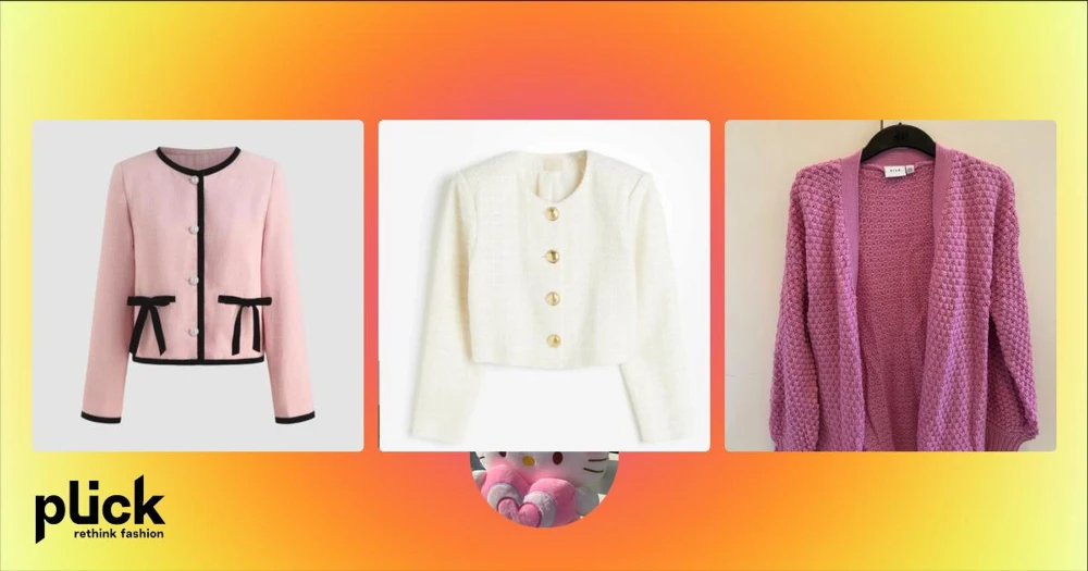 Rosa kavaj från Cider - Snygg rosa kavaj från Cider med svarta detaljer och knappar framtill. Den har dekorativa rosetter vid fickorna och en elegant rund halsringning. Perfekt för en stilren look.