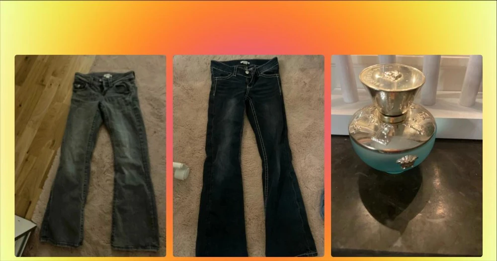 Jeans  - Blå jeans, midwaist skulle jag säga. (Säljer även tröjan i annan artikel.
