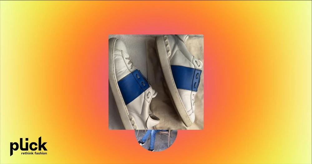 Valentino Garavani sneakers blå/vit - Snygga Valentino Garavani sneakers i vitt skinn med bred blå panel och coola nitar på sulan. Klassisk rund tå, vita snören och robust platt sula. Märkeslogga på plösen och detaljer i blått för en stilren look. Perfekta för dig som gillar exklusiva sneakers.. perfekta inför sommaren och hösten. Man får även med orginal påse. Pris kan diskuteras. Skicket är bra men det finns några skråmor men annars syns det knappt att dom är använda.