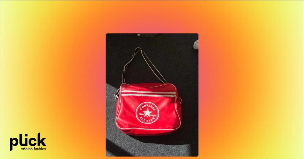 Röd Converse Chuck Taylor - Röd axelväska från Converse i klassisk retrostil med vit piping och stor logga på framsidan. Väskan har justerbar axelrem, ett stort huvudfack och en dragkedjeförsedd ytterficka. Materialet är glansigt konstläder som ger en sportig vibe.