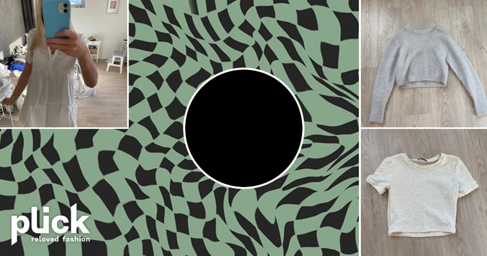 Stickad tröja - En liten croppad vit/grå stickad tröja från zara. Använd ett par gånger men är fortfarande i bra skick. Det har blivit lite svart på högra axeln som ni kan se på bilderna men annars inga fel.
