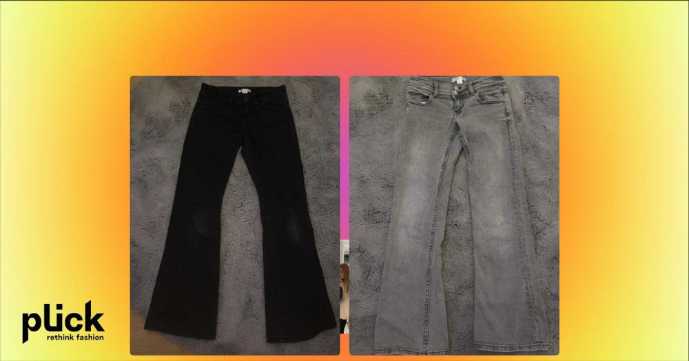 Grå bootcut jeans med stjärndetalj - Säljer ett par grå bootcut jeans med klassisk femficksmodell och en snygg stjärndetalj på ena bakfickan. Jeansen har en lätt tvättad look och raka, något utsvängda ben. Perfekta för dig som gillar en avslappnad men trendig stil.